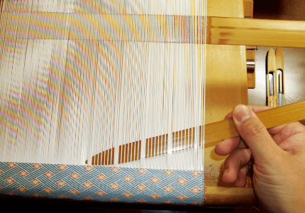 Weft thread is woven in between. This process is repeated and the textile is complete!