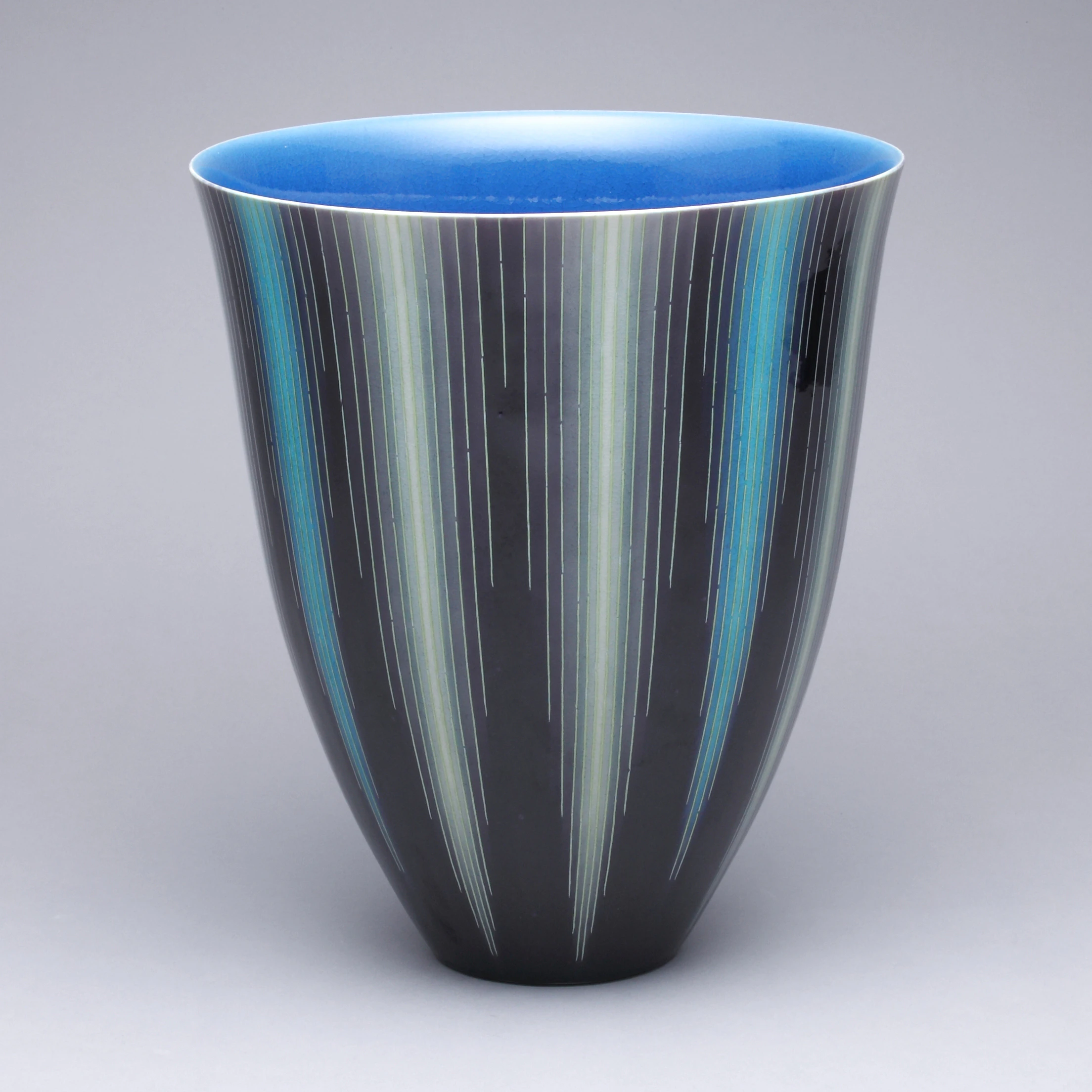 Flower Vessel with line design in underglaze silver