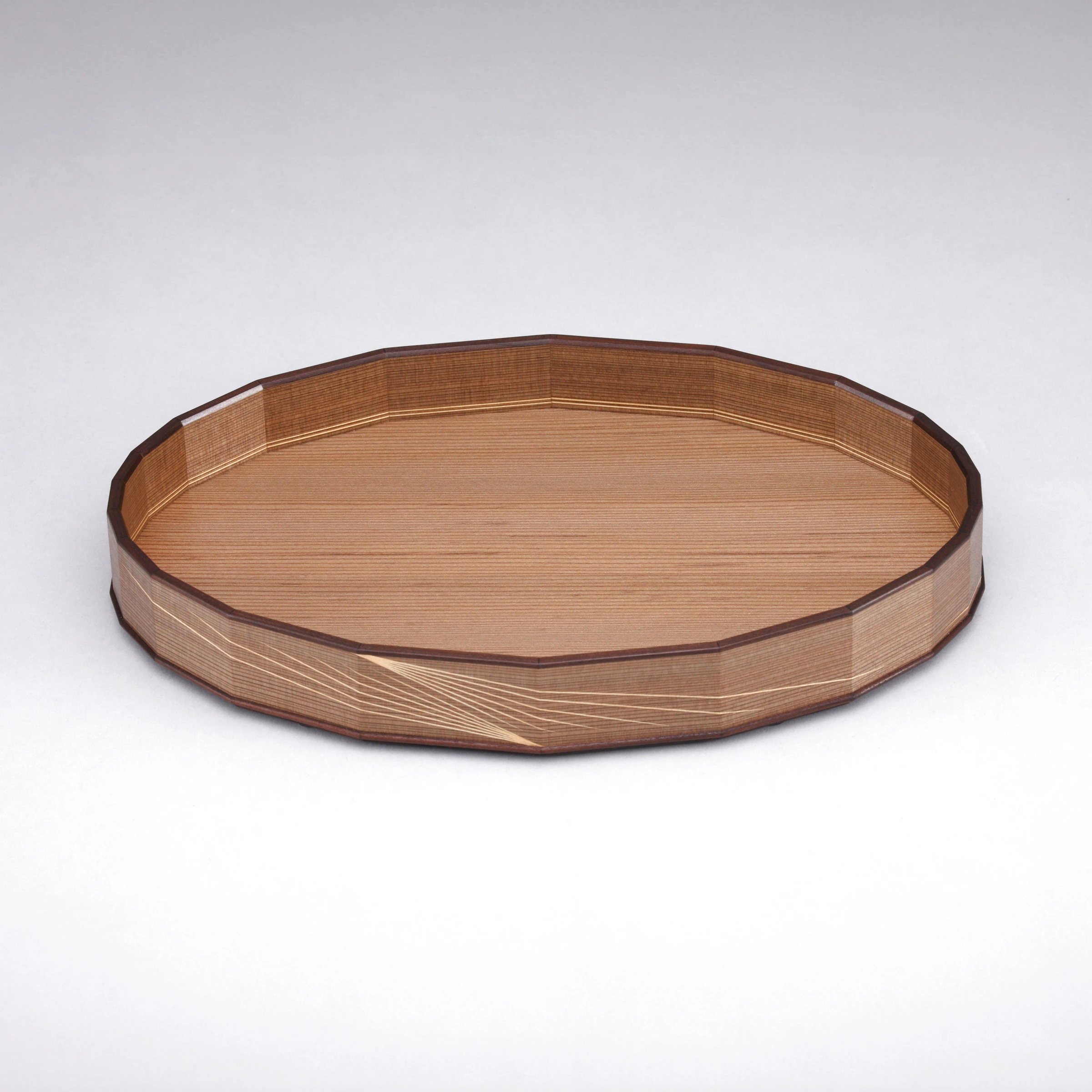 神代杉挽曲造木象嵌菓子盆