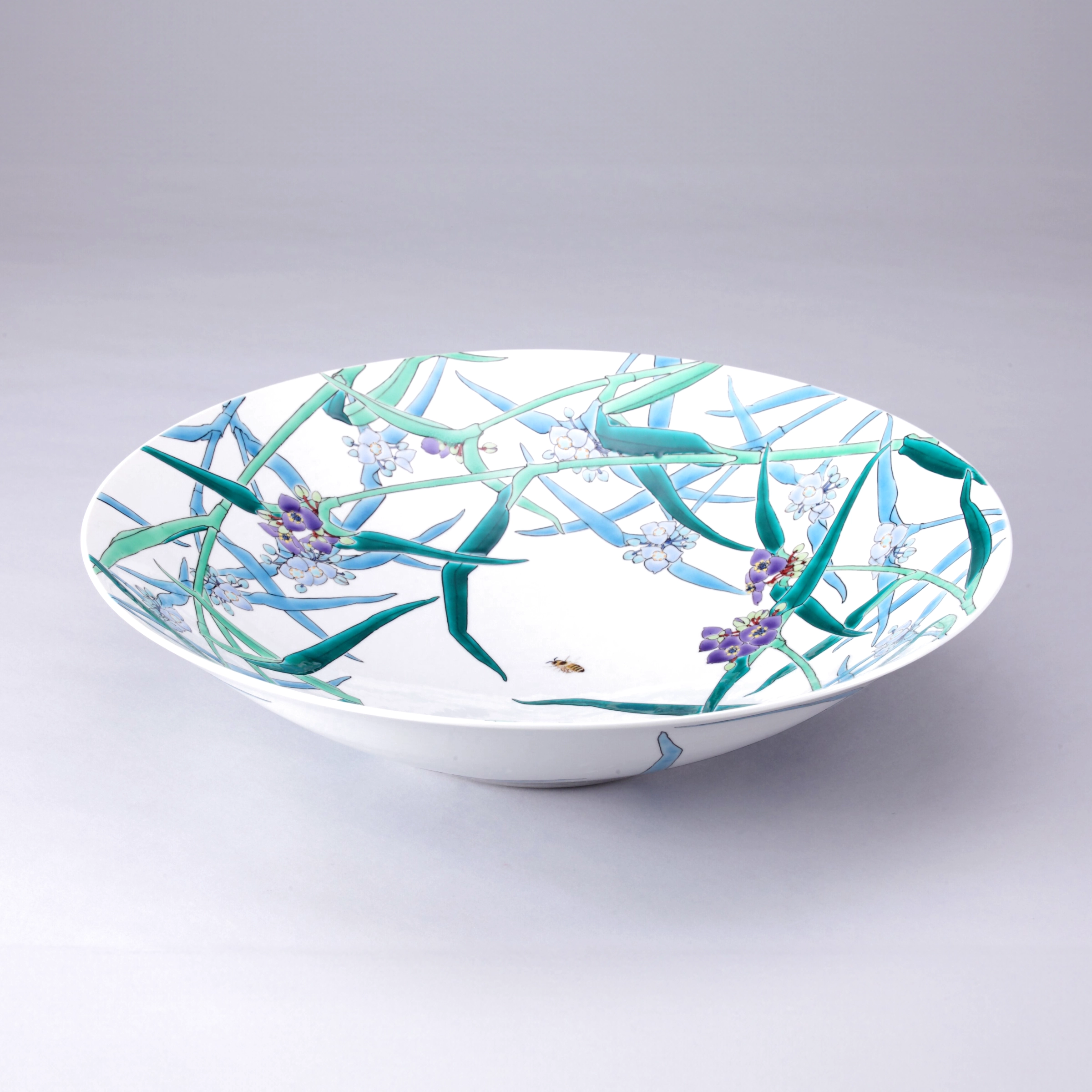 Overglaze enamel decorations (iro-e, literally “colored pictures”) are achieved by applying designs to the surface of already glazed and fired porcelain. The decorations are painted over the glaze, and the piece is fired again at a low temperature of approximately 800℃. The pigments used in traditional overglaze decorations are known as wa enogu (“Japanese paints”) and offer a palette of colors such as red, blue, yellow, green, and purple. Overglaze enameling may also be done with Western pigments (yō enogu).