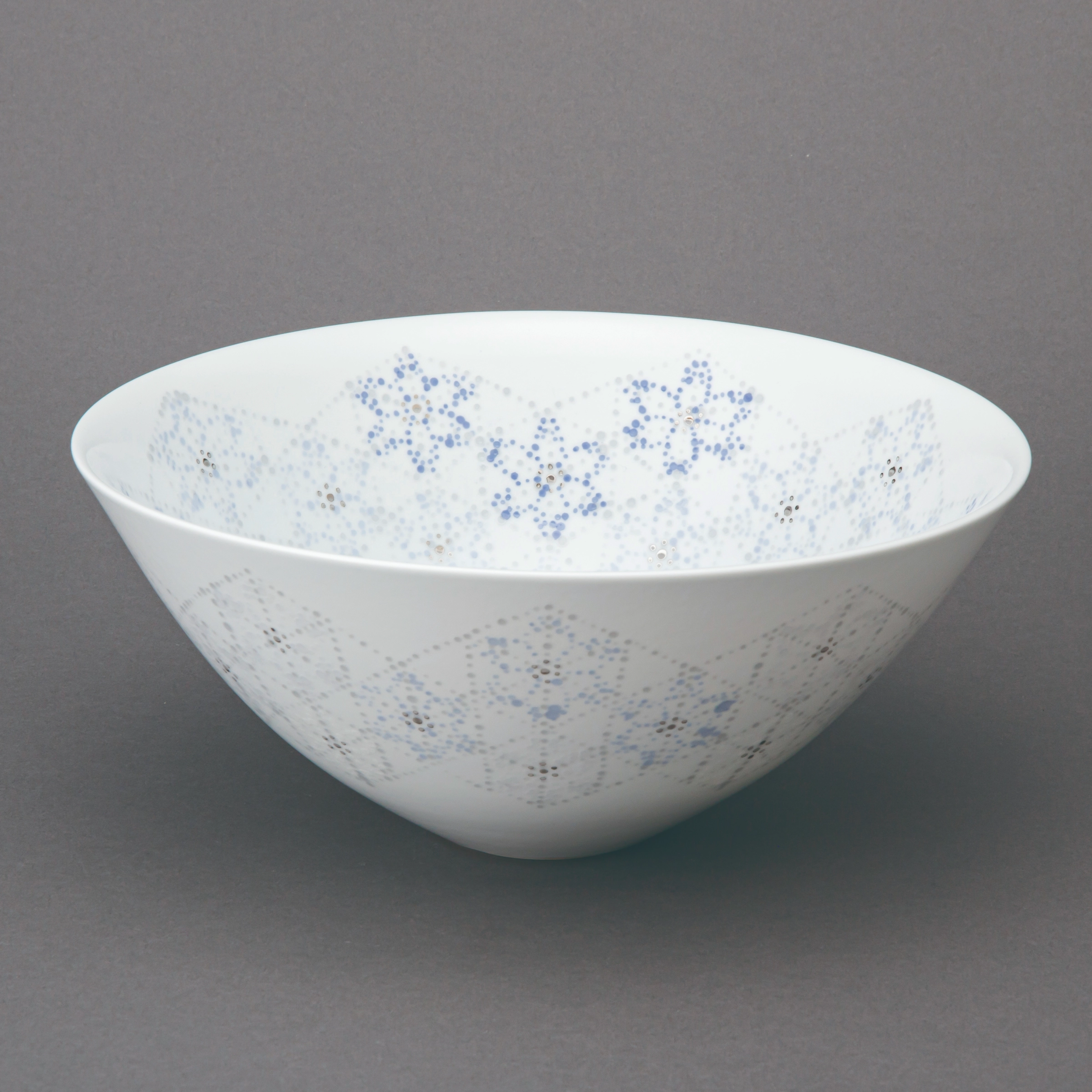 White porcelain is made from a pale clay of pulverized pottery stone coated in a transparent glaze. Porcelain from China’s Song dynasty is especially famous. Japanese production began in the early seventeenth century in Arita on the island of Kyushu. White porcelain is frequently used as a base for overglaze enamels (iro-e) and blue-and-white (sometsuke) ware.