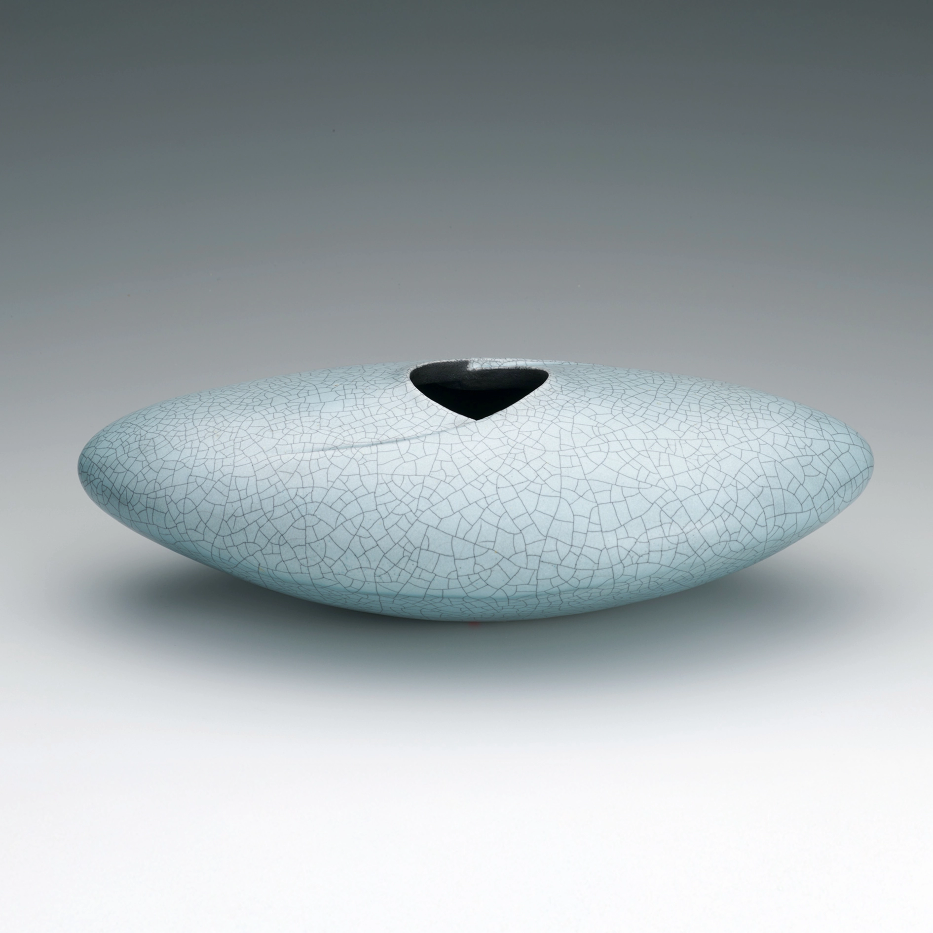 Flower Vessel with Pale Blue Glaze and Charcoal Finish