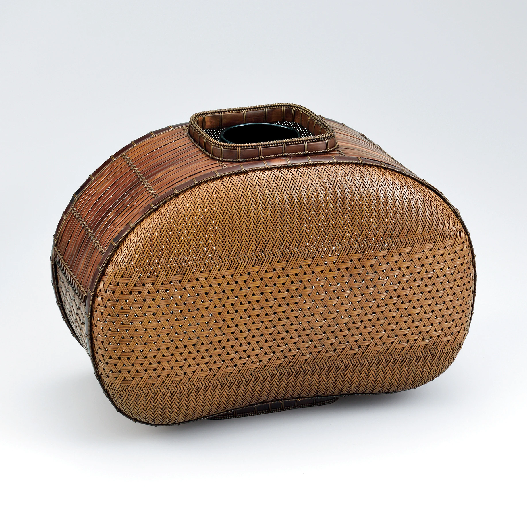 Plaited bamboo basketry (amimono) is created by weaving together hundreds of strips of bamboo into patterns known as plaiting (ami). Various patterns and shapes can be created by using bamboo strips of different widths or thicknesses. The many styles of plaiting utilize bamboo’s pliability to produce beautifully patterned works.