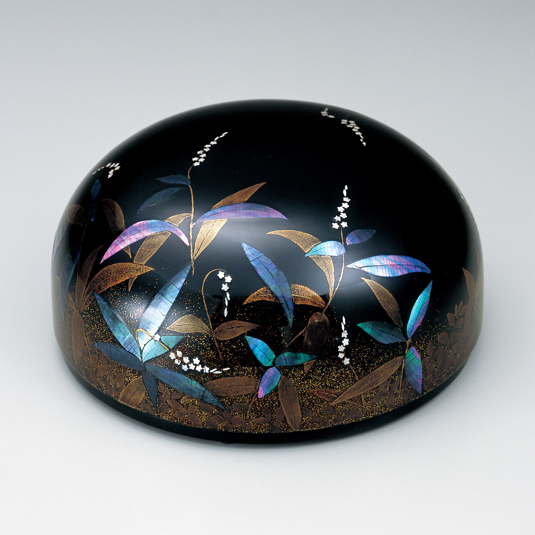 Mother-of-pearl inlay (Raden) is a decorative technique that uses the iridescent inner layer of abalone shell, turban shell, pearl oyster shell, or other mollusk shells. The technique came to Japan from China 1,300 years ago, and pieces featuring mother-of-pearl inlay are included among the artifacts at the Shōsōin Repository in Nara.