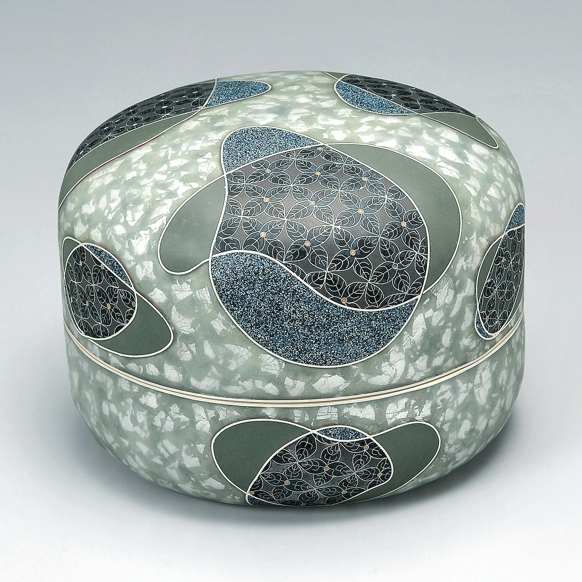 Covered Vessel with cloisonne over silver leafed body "Water,Light and flower"