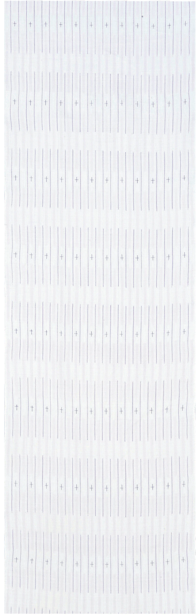 Echigo jōfu (“Echigo fine cloth”) is a fabric with a long history, made from the fibers of the perennial plant ramie (choma, or karamushi). The fabric is woven on a simple backstrap loom, which allows the weaver to adjust the tightness of the warp (vertical threads) using a strap around the weaver’s waist. The design is created by arranging the alignment of the weft (horizontal threads). The woven cloth is then softened by kneading the fabric in hot water, and naturally bleached by laying it out over snow on a sunny winter day. The finished colored fabrics take on a more subdued tone, while the white fabrics are bleached a brighter white, resulting in a high-quality fabric for summer kimono.