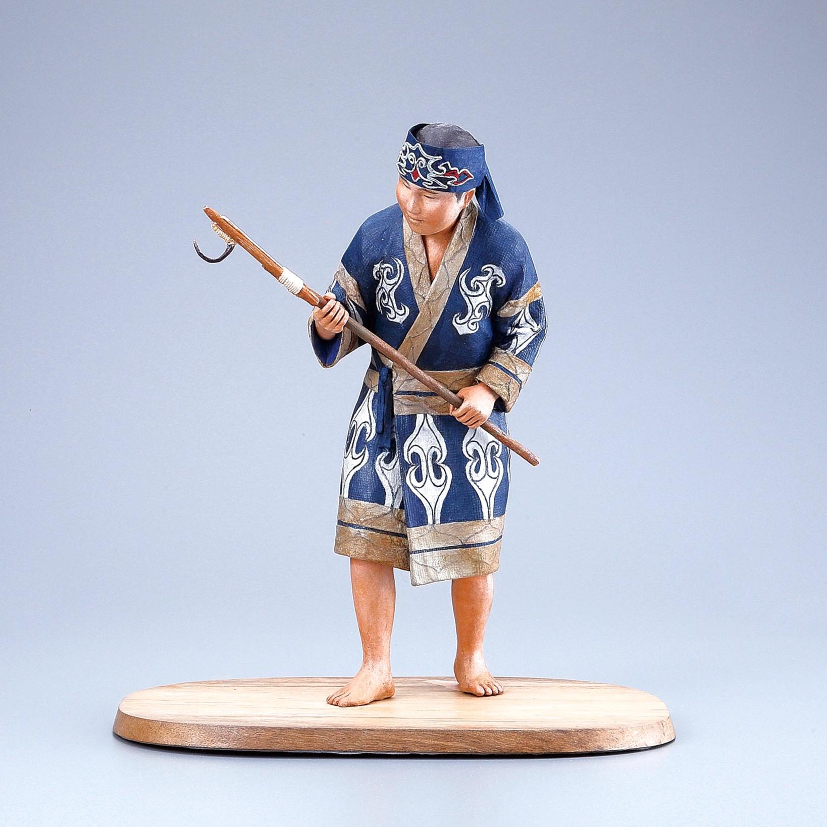Tōso dolls (tōso ningyō) are made of a modeling compound called tōso (a mixture of paulownia sawdust and paste) attached to a core of solid paulownia. Tōso can be freely fashioned while soft to produce all manner of forms. The molded forms are thoroughly dried before use to ensure that they won’t warp.