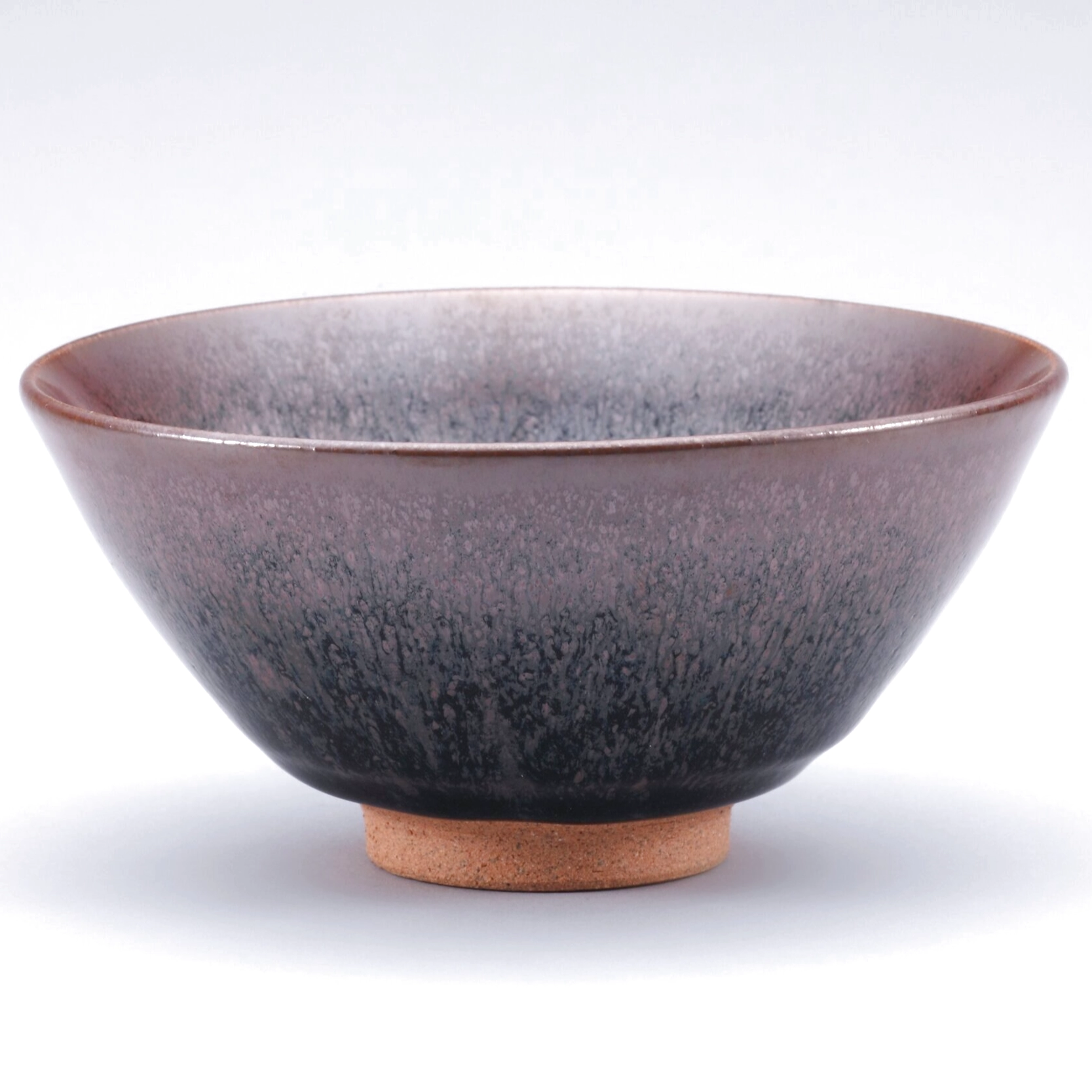 鉄釉とは、鉄を含む釉薬の総称です。鉄の含有量によって黒色、茶色、黒褐色、柿色などの違いが生まれます。なかでも、5%程度の鉄を含む黒っぽい釉薬は天目釉と呼ばれています。