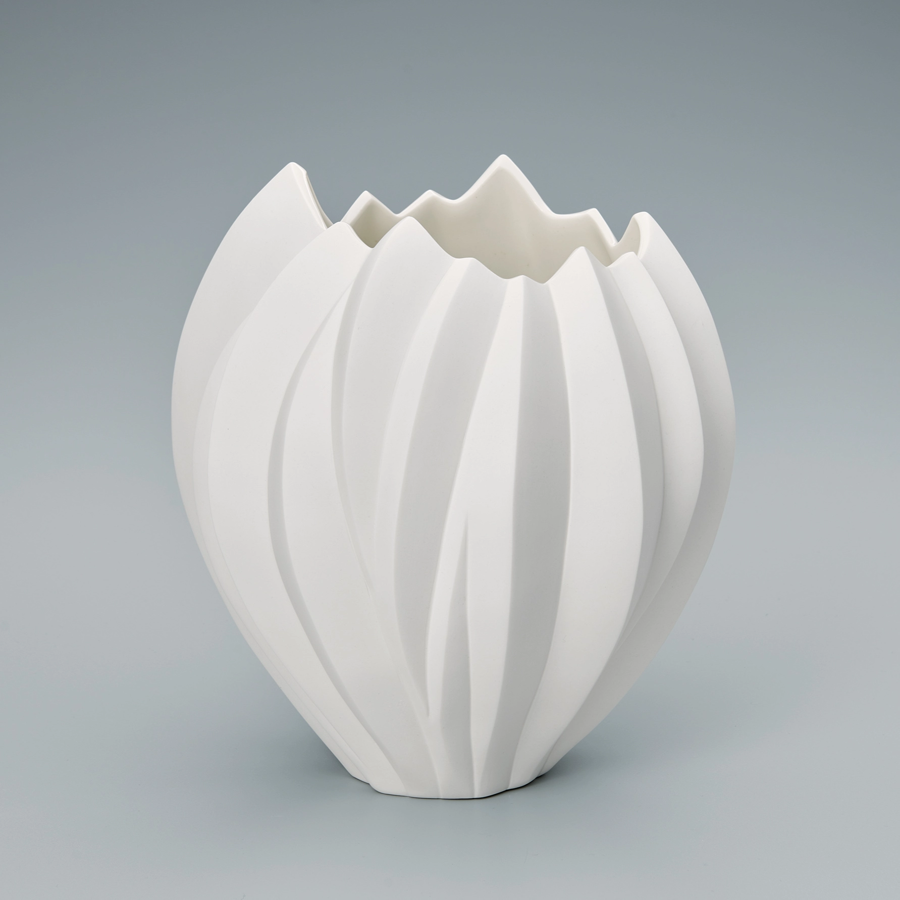 白磁は、陶磁器の原料になる岩石を粉にしてできた白色の粘土に透明な釉薬をかけてつくります。中国・宋時代の代表的なやきもので、日本でも江戸時代初頭から九州の有田地方で制作が始まりました。色絵や染付の素地としても用いられています。