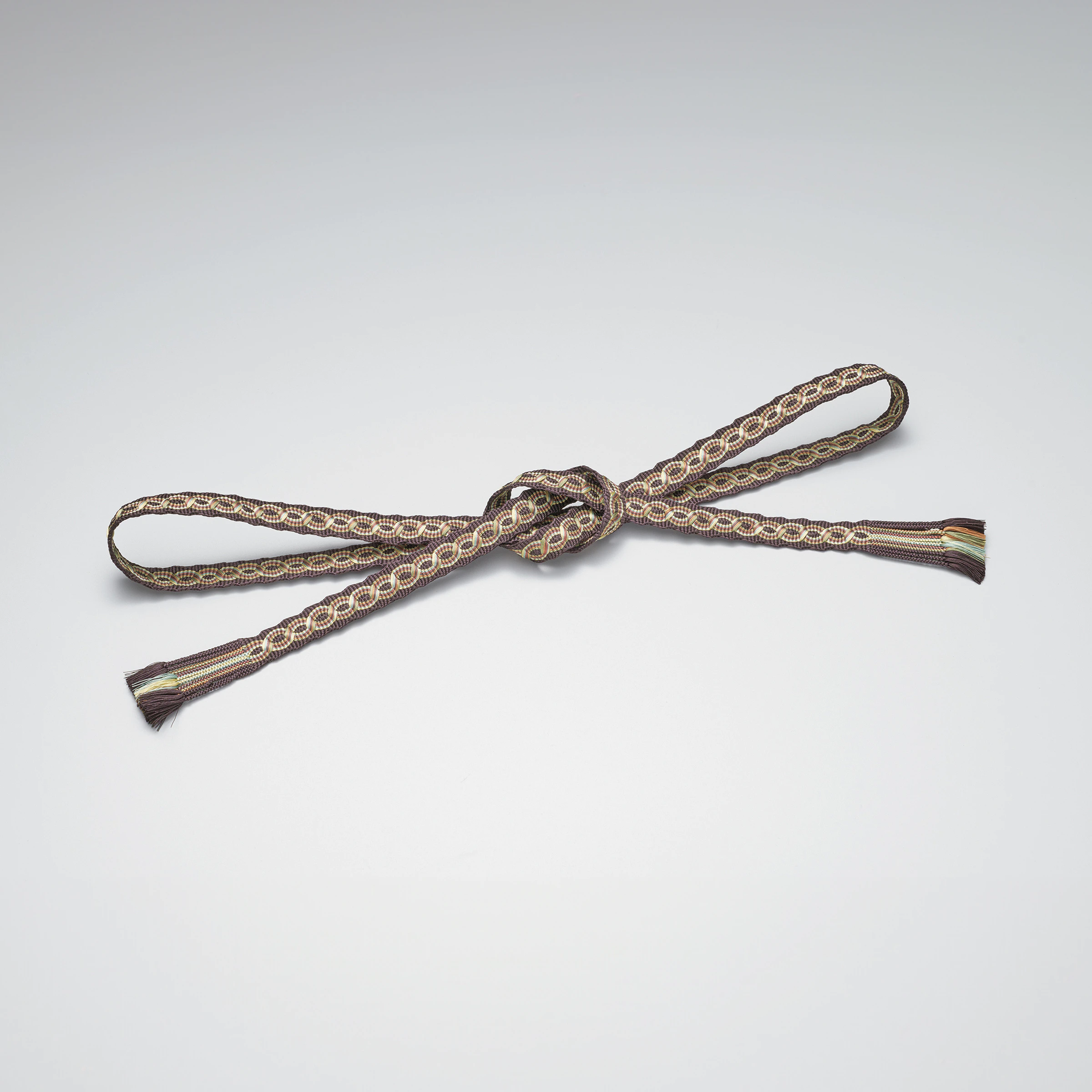 数十本の糸を一束にして、その幾束かを交差させて組んだものを組紐といいます。組紐は、物をむすんだり、しめたりと昔からさまざまな用途に使われていました。現代では着物の帯締としていろいろな柄がつくられています。