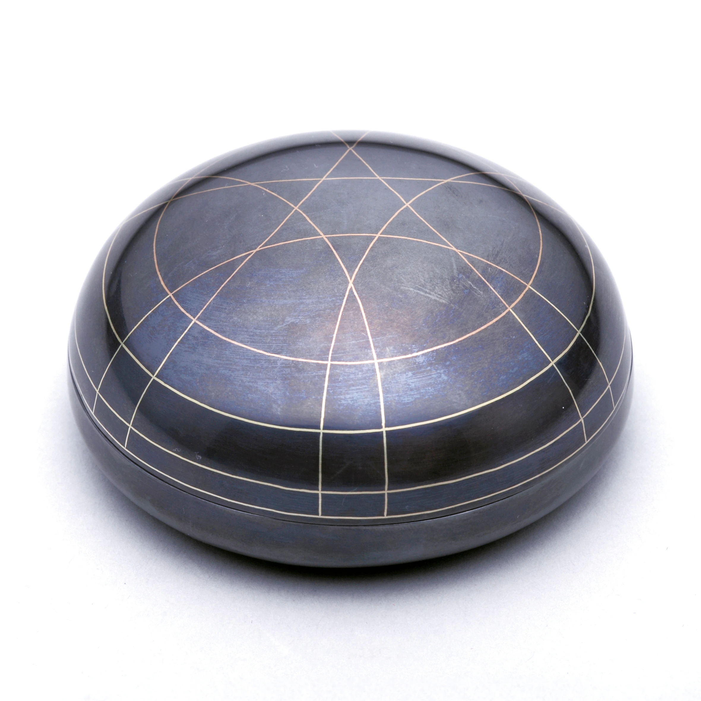 金属の表面に模様を彫り別の金属を嵌めこんで、それぞれの金属の色や質感のちがいによって模様を表現します。