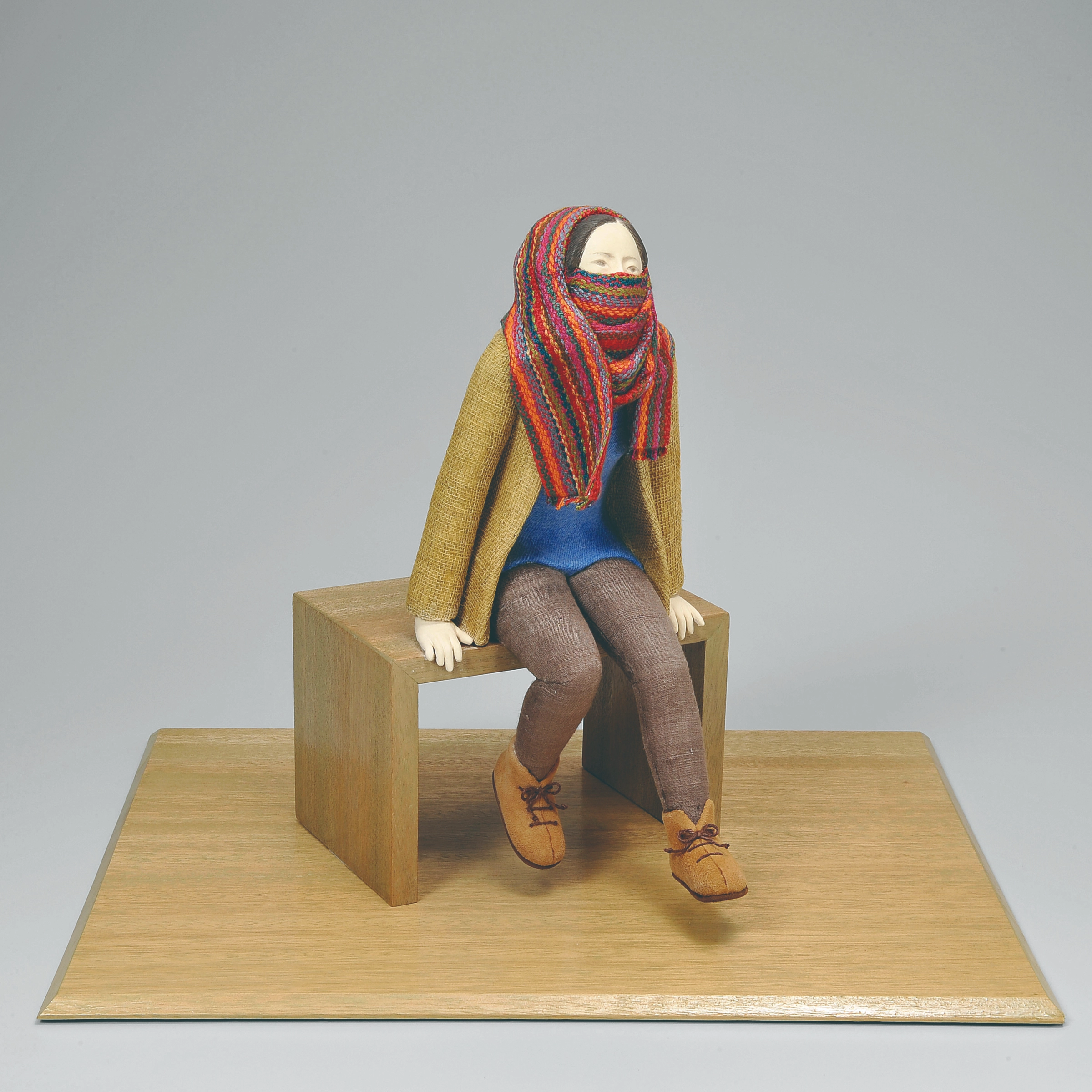 胴体のみぞにのりを置き、布のはしをヘラで押しこみます。人形の衣装が細いみぞにぎゅっと入っていることに気づきましたか?これは木目込みといって、人形の胴体に衣装をつける時に布のぬい目にそって人形にみぞを彫り、そのみぞにのりを置いて布のはしをヘラで押しこんで衣装をとめる方法のことです。細かい衣装の模様も木目込みであらわしています。
