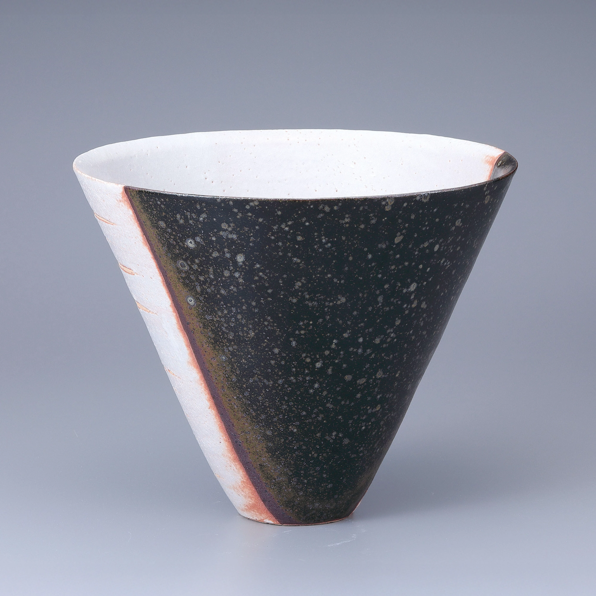 志野は、卵殻色の百草土(もぐさつち)を使い、その上に白い長石釉を厚くかけてつくります。長石釉による不透明な乳白色が特徴です。